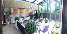 Дизайн-студия «ALEXROOM» сотрудничает с Первым каналом телевидения в проекте «ФАЗЕНДА». Новая терраса в столетнем доме. Одним из выпусков стал проект летней террасы для семьи проживающей в деревянном доме ,в стародачном поселке, в легендарной Малаховке!